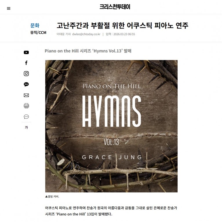 뮤직타임 [기사] 고난주간과 부활절 위한 어쿠스틱 피아노 연주(크리스천투데이)