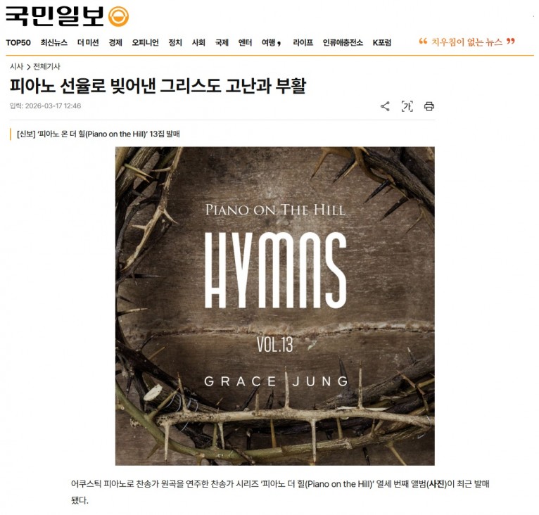 [기사] 피아노 선율로 빚어낸 그리스도 고난과 부활(국민일보)